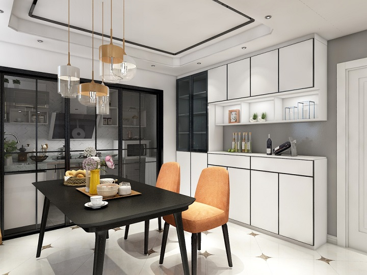餐廳裝修通常選擇暖色,因為餐廳是一家人一起用餐的地方,因為這事一件非常幸福溫馨的事情,因此不宜使用冷色調,可以多采用中性色,如灰色、棕色、沙色、石色、淺黃色等。
