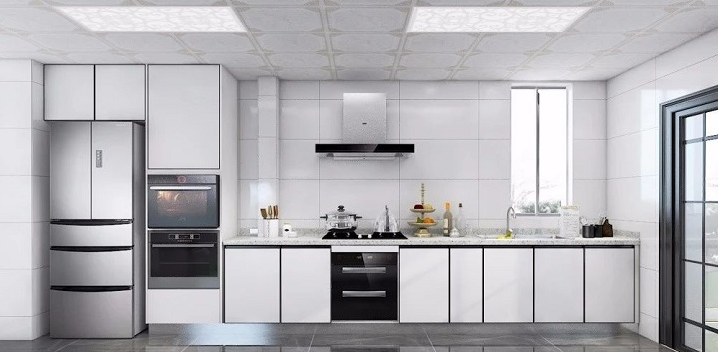 U型櫥柜適用于面積標準較高,平面接近方形的廚房,儲藏空間充足,設備布置較為靈活。